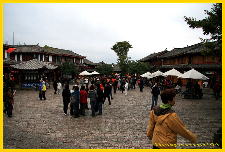 우리가 이곳에 왔을 때는 나시족의 춤판이 낮에는 쓰팡지에, 밤에는 위허 광장에서 벌어졌다.
