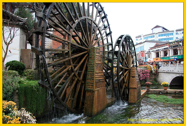그곳에는 물레방아처럼 생긴 대형 수차가 두 개 있어 쉬지 않고 돌아간다.
