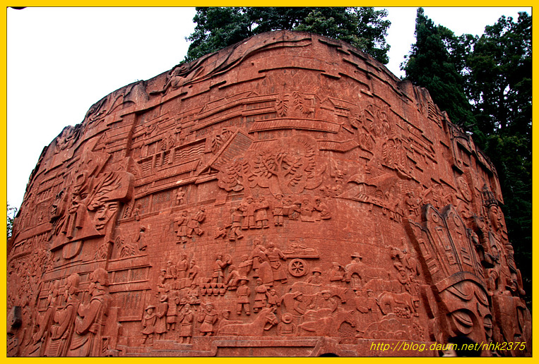 그곳에는 세계문화유산에 등재된 것을 기념하여 만든 커다란 석벽 조형물이 있고