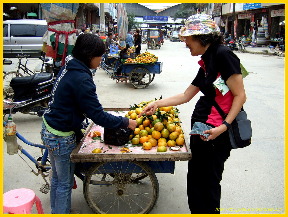 시장에서 과일을 살 때도 미소가 필요하고 그 미소로 덤을 하나 더 얻을 수 있습니다.