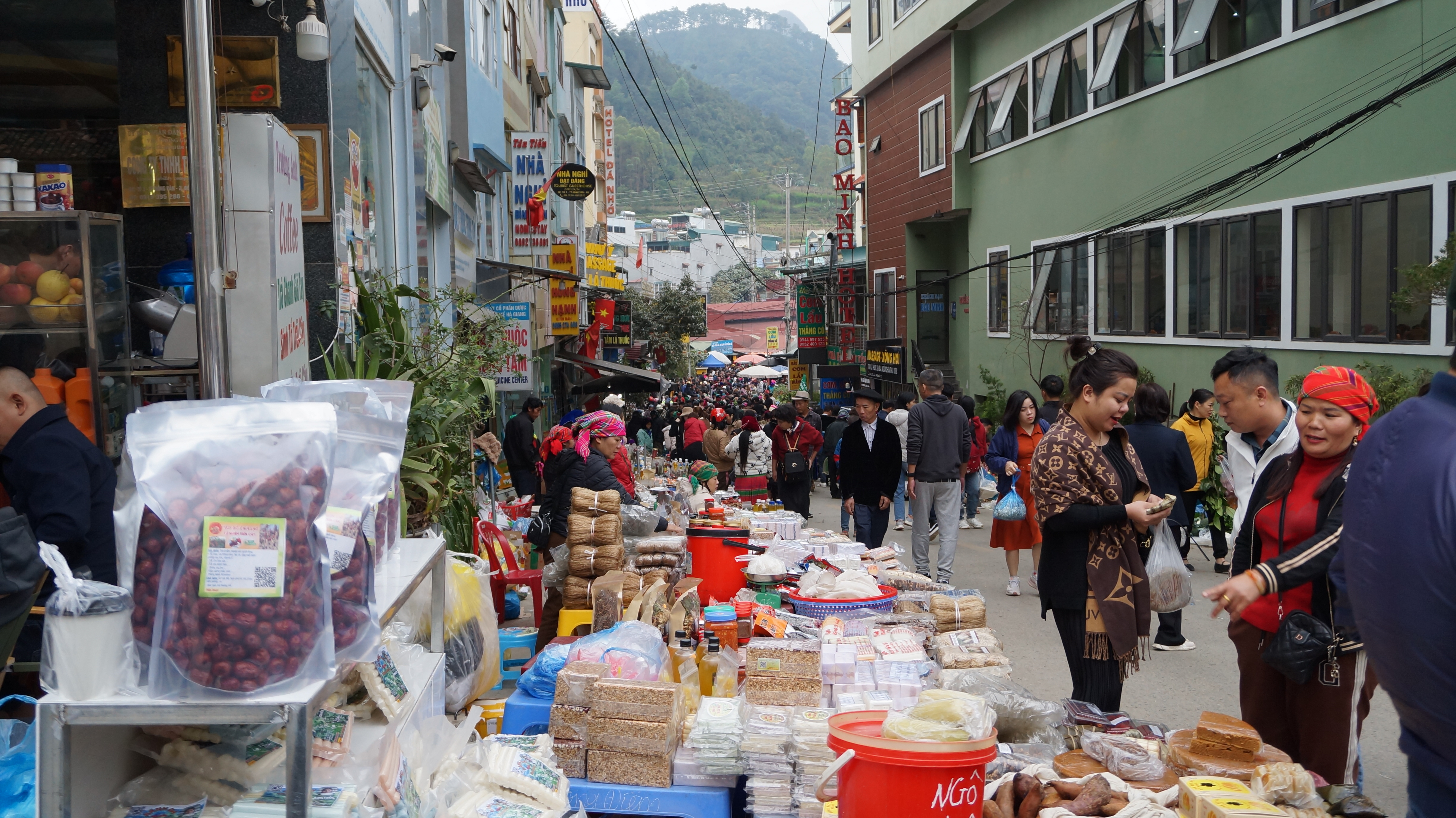 동반 인근의 많은 소수민족이 이곳에 모여들어 북새통을 이루지요.