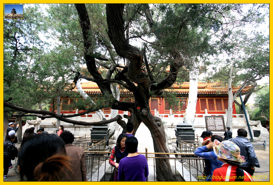 흠안전 주변을 보면 수십 그루의 측백나무가 기묘한 형상으로 얽혀 있습니다.