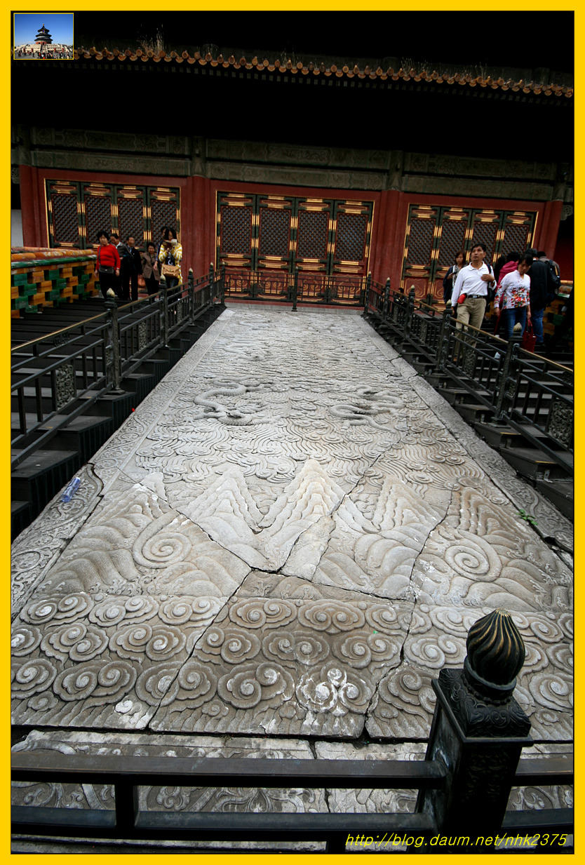 외조의 삼대전 중 마지막 보화전 뒤로는 자금성에서 가장 큰 석조 계단이 있고