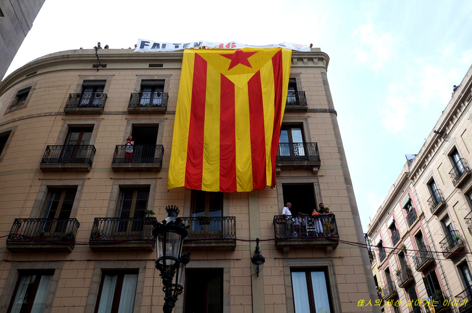 그러고 보니 광장 곳곳에 스페인 국기가 아닌 이들만의 카탈루냐 국기가 걸려 있었고