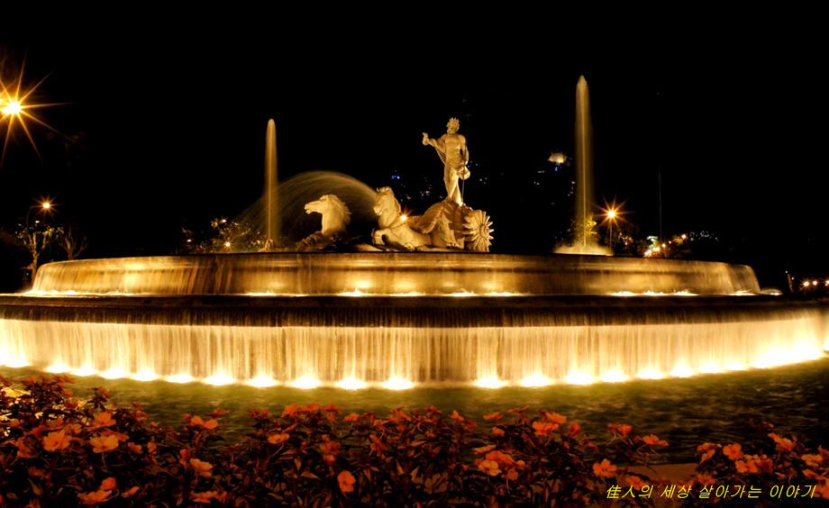 넵튜노 분수(Fuente de Neptuno)를 밤에 보면 이런 모습입니다.