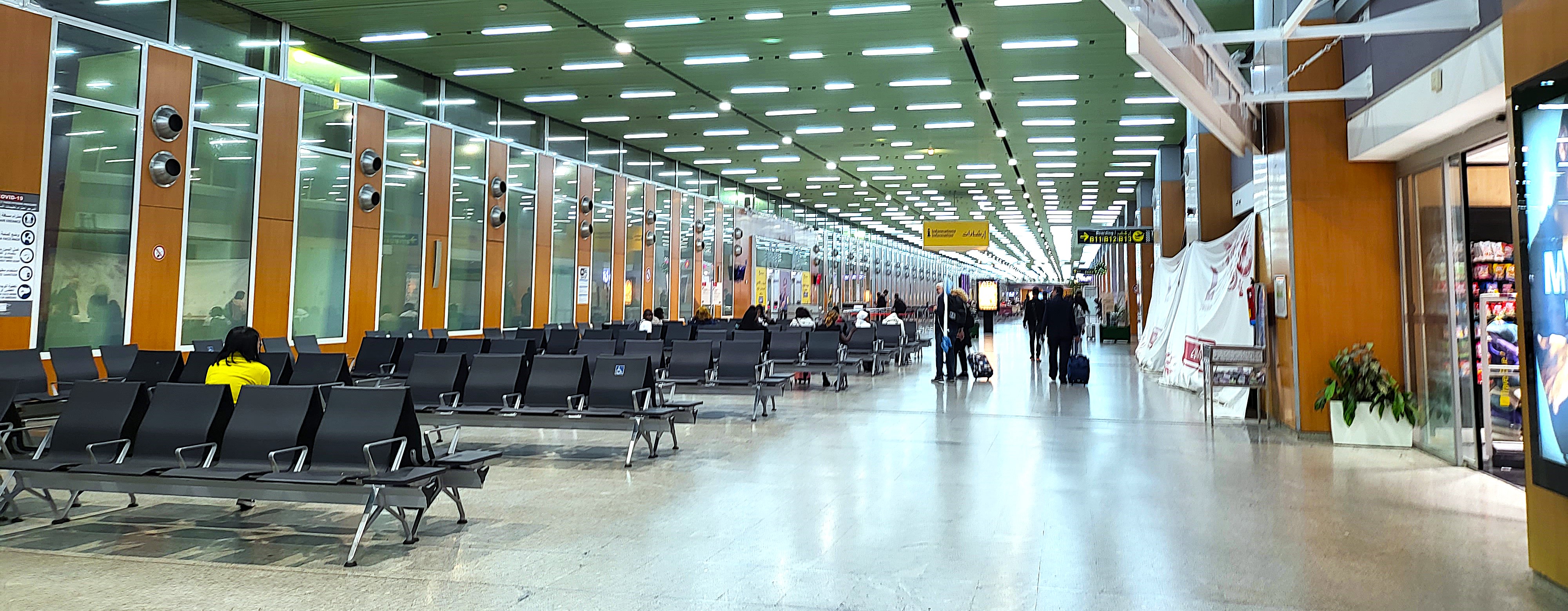 카사 포르트역으로 가 한 시간에 한 대 운행하는 기차로 공항으로 갑니다.