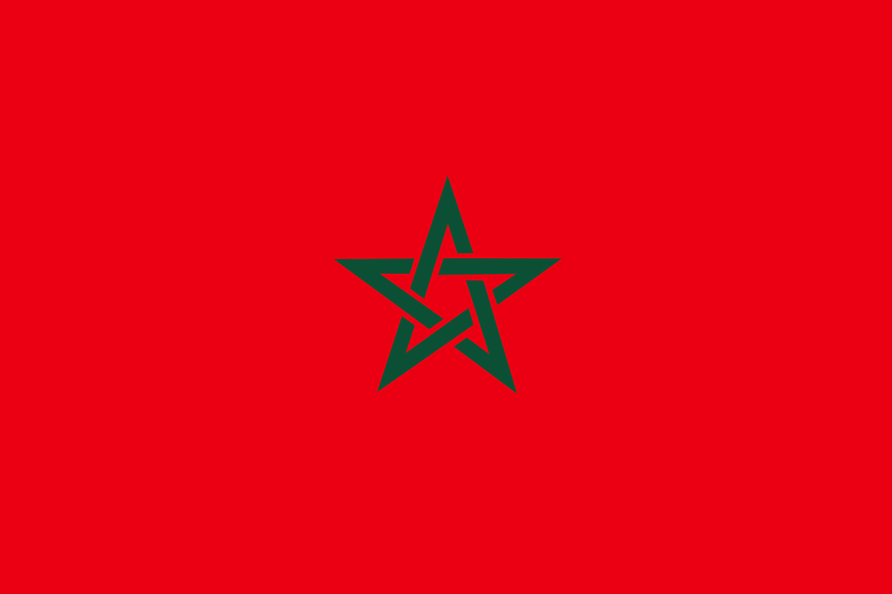 모로코 국기는 빨간 바탕에 초록색 별이 그려져 있는 단순한 형태입니다.