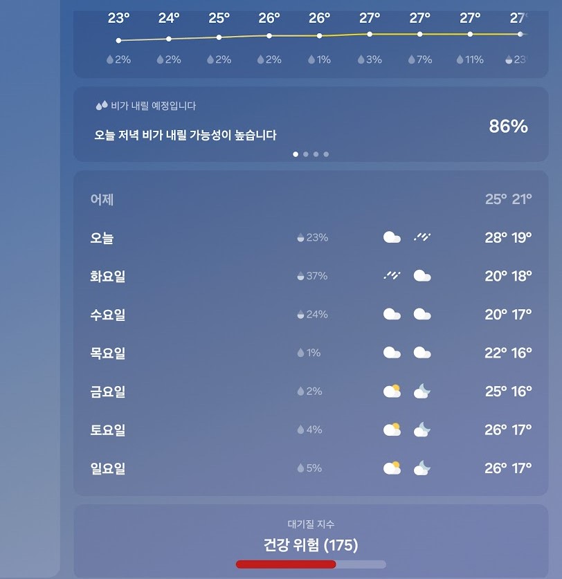 현재의 수치는 175µg/m³로 건강에 위험을 줄 정도라고 경고가 뜹니다.