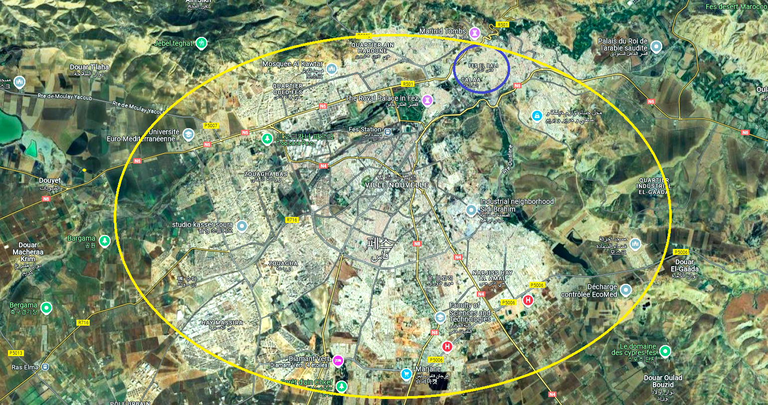 지도를 통해 보면 사실 페스라는 도시는 대단히 넓은데 그러나 보통 여행자가 다니는 메디나