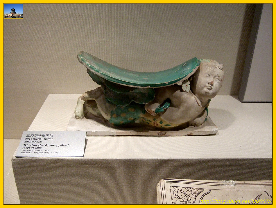 위의 사진은 삼채 동자상 도자기 베개입니다.
