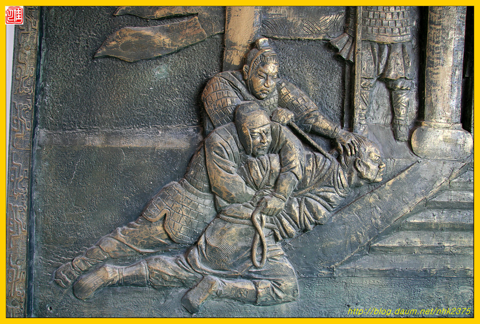 조승상부 양쪽으로 담장을 따라 영웅의 삶을 동판으로 만들어 조각으로 남겨놓았습니다.