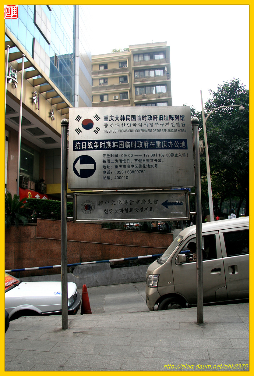 위치는 바로 대한민국 충칭 임시정부로 들어가는 입구 50m 정도 위에 있어
