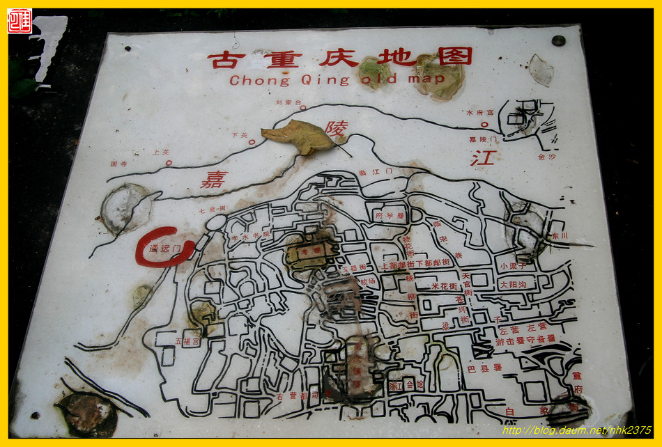 옛날 충칭 지도를 보시면 왼쪽에 통원문이 보이실 겁니다.