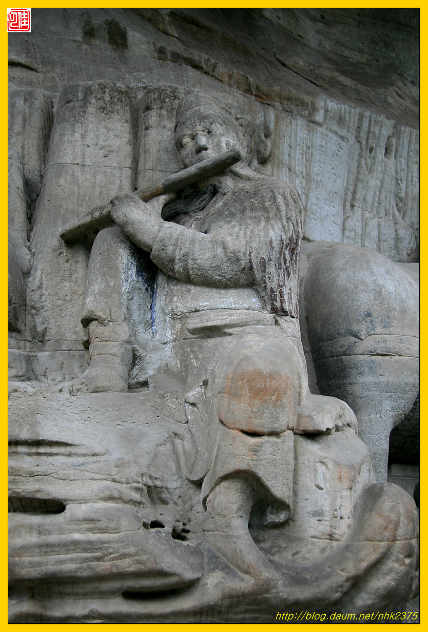 소 등을 타고 피리 부는 모습도 돌에 새겨 놓았습니다.