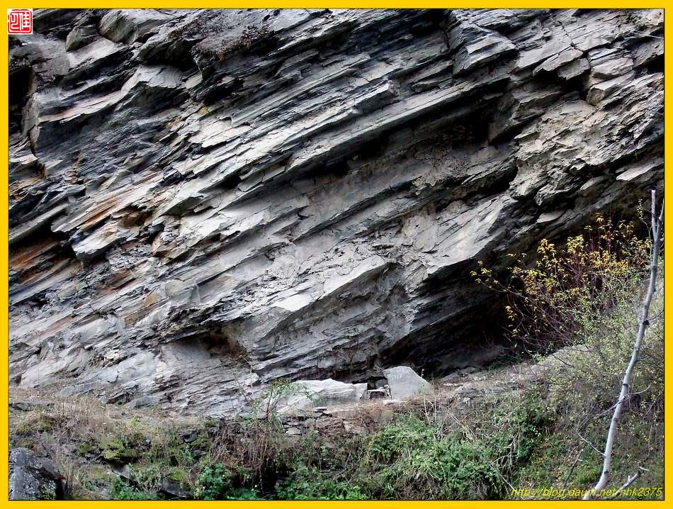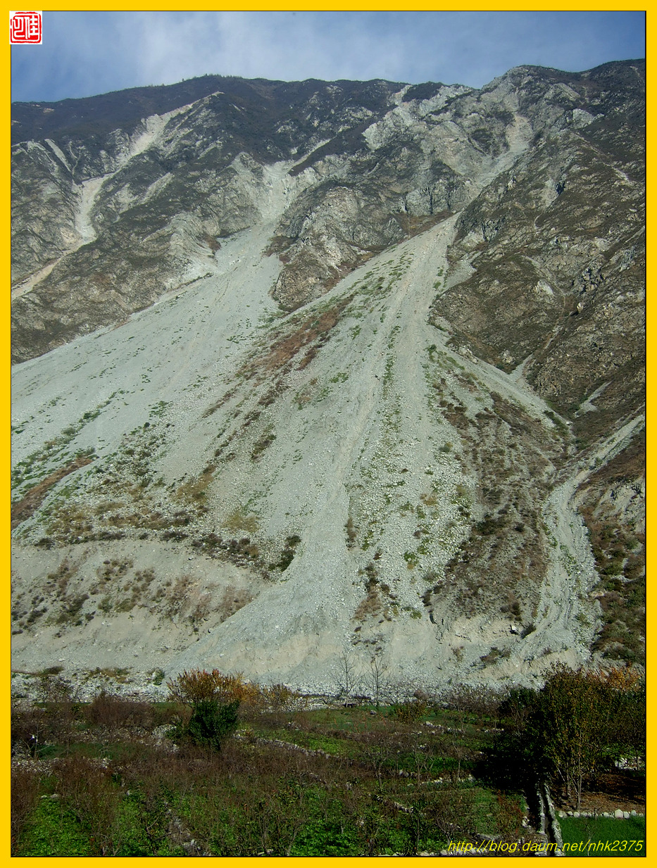 지진 당시의 토사가 흘러내렸던 모습이 그대로 남아있습니다.