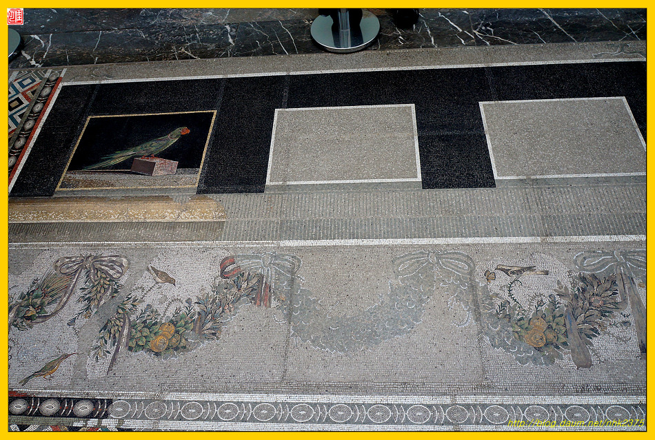 위의 사진은 어느 로마인 가정의 식당 바닥에 만든 모자이크 바닥입니다.