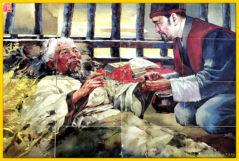 위의 그림은 화타가 조조에 의해 옥에 갇힌 후 그를 정성껏 돌보아준 옥리라는 오압옥의