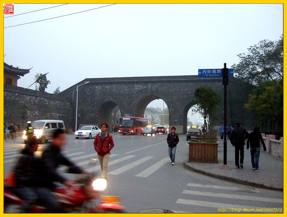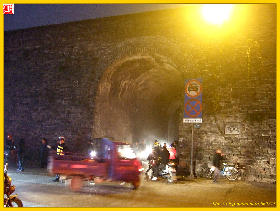 남문까지 성벽을 따라 걷다 보니 이제 징저우의 밤이 깊었습니다.