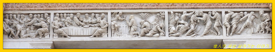 위의 조각은 왼쪽부터 예수께서 발을 씻겨주시는 모습이고 그다음이 최후의 만찬,
