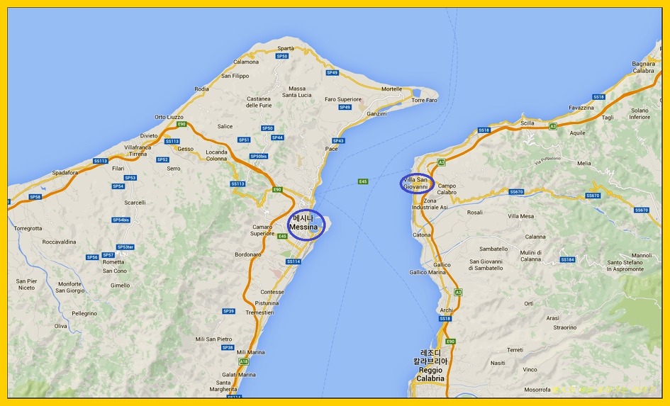육지인 산 조반니와 시칠리아의 메시나까지 거리가 10km 정도 떨어진
