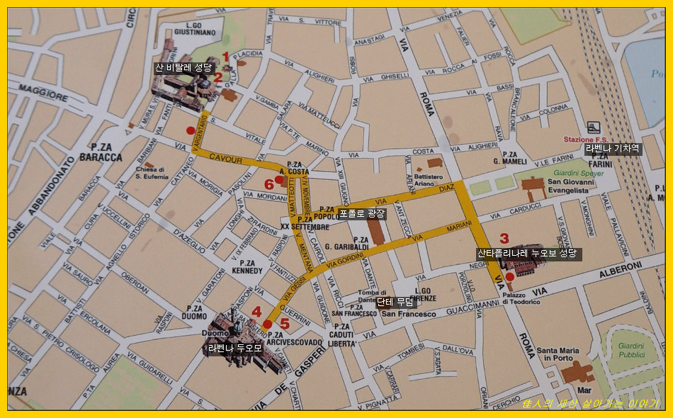라벤나를 구경하는 방법은 우선 라벤나 역에서 내려 광장 앞으로 곧장 난