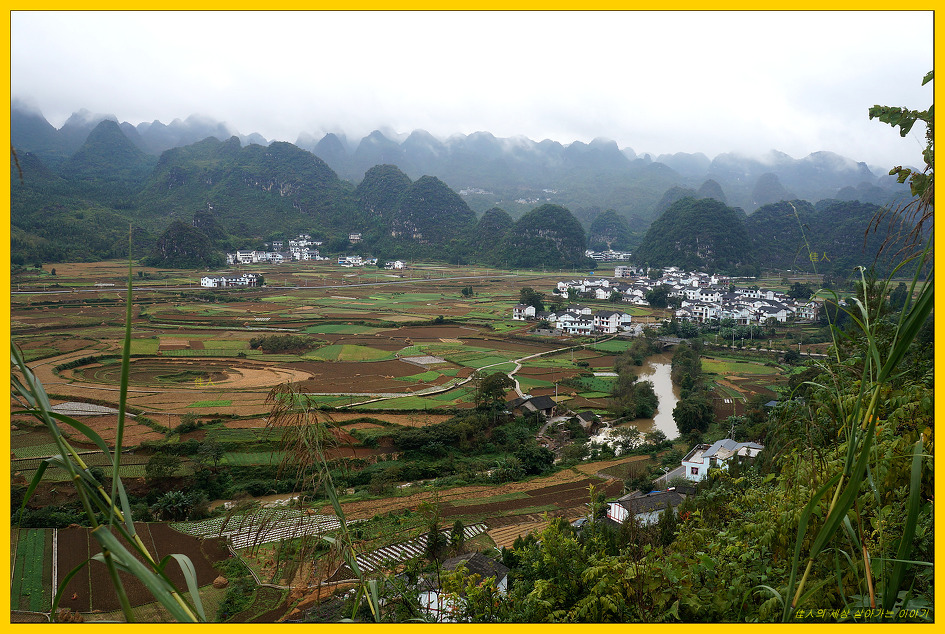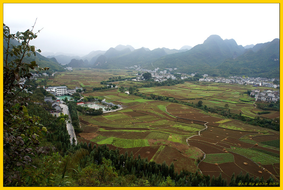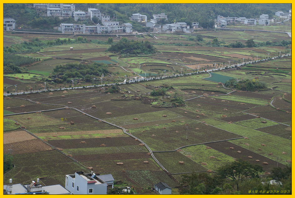 위의 사진에 보이는 마을 양쪽으로 둥근 형태의 밭이 보입니다.