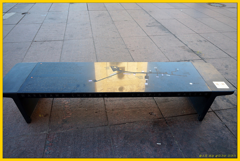 벤치 위에는 쇼팽 루트라고 할 수 있는 지도가 새겨져 있습니다.