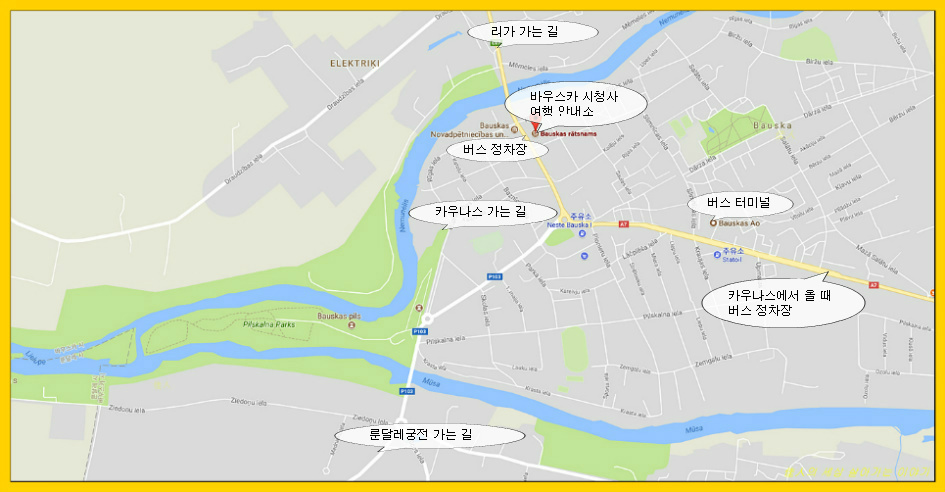 카우나스나 빌뉴스에서 올 때는 버스가 시청사 광장 앞에 리가로 가는 도로에서