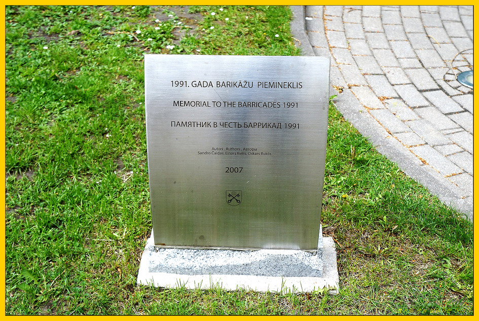 위의 사진은 그 건물 앞에 설치한 기념물 Barricades Memorial (Latvian: Barikādes)입니다.