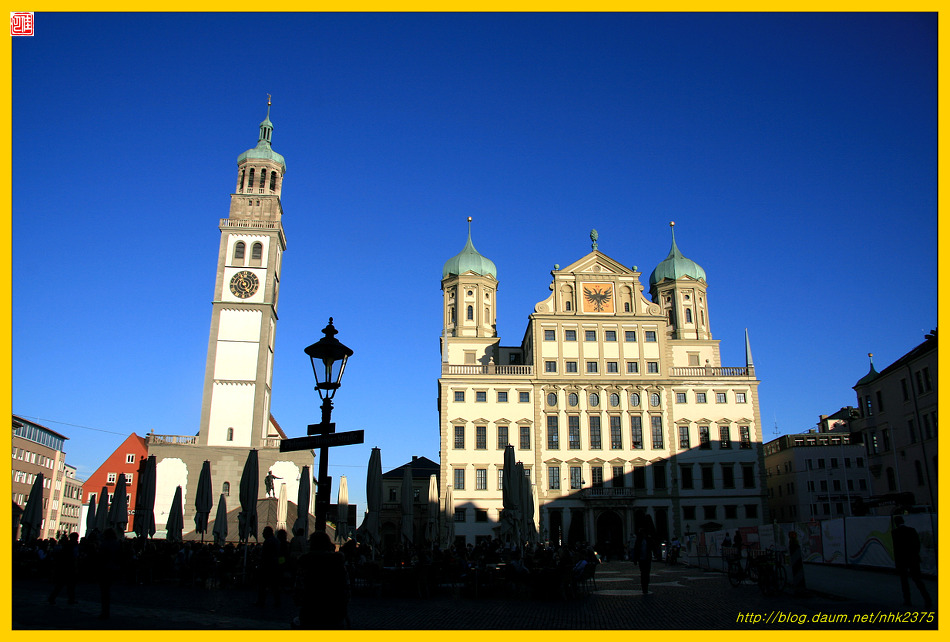 위의 사진에 보이는 건물이 아우크스부르크의 시청사입니다.
