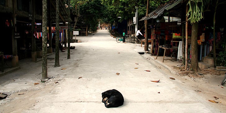 마을 길로 접어드니 사람은 별로 보이지 않고 개들만 놀고 있습니다.
