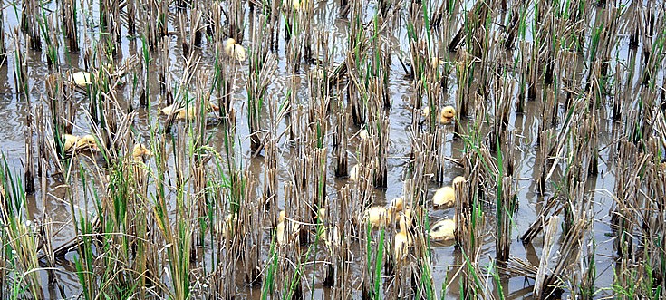 오리 새끼도 추수를 끝낸 논 사이로 헤엄치며 놀고 았습니다.