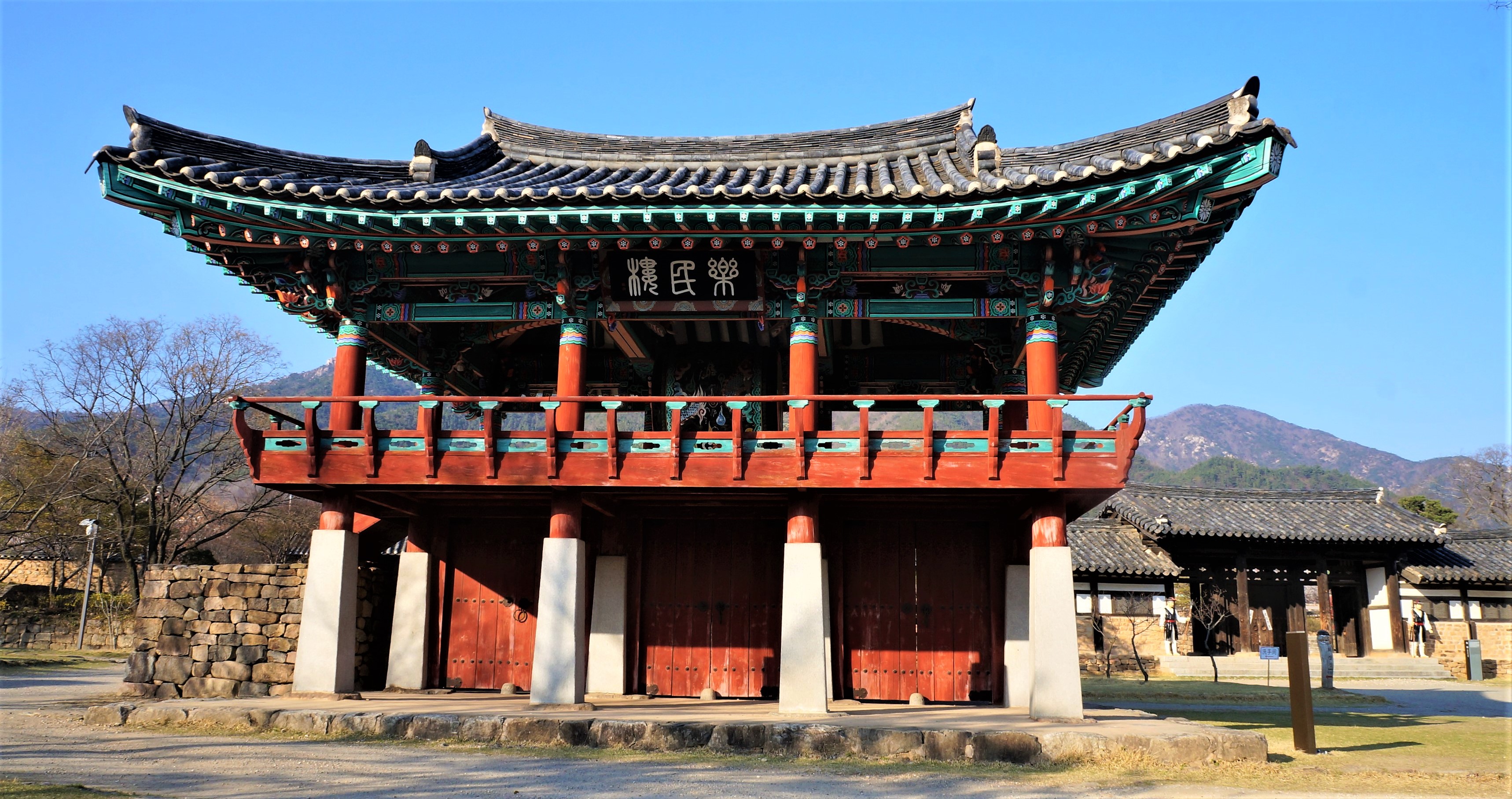 2층 누각 가운데는 낙민고라는 북을 매달아 억울한 사람이 울리는