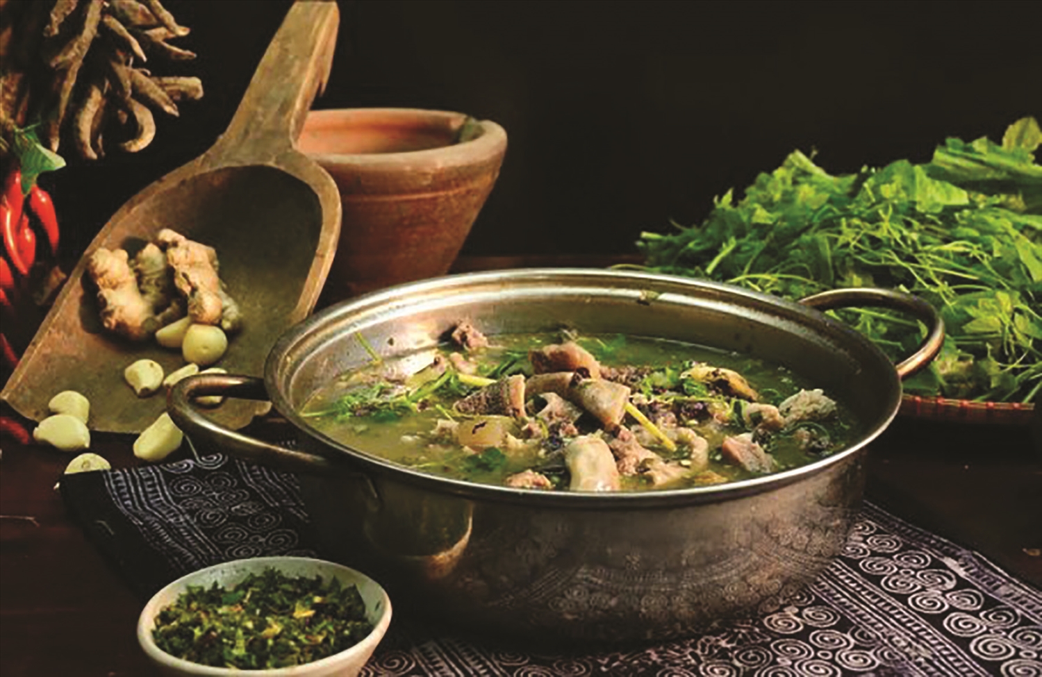 하지앙(Ha Giang)의 파머스 마켓에서 볼 수 있는 특별한 요리인 탕코(Thang Co)에