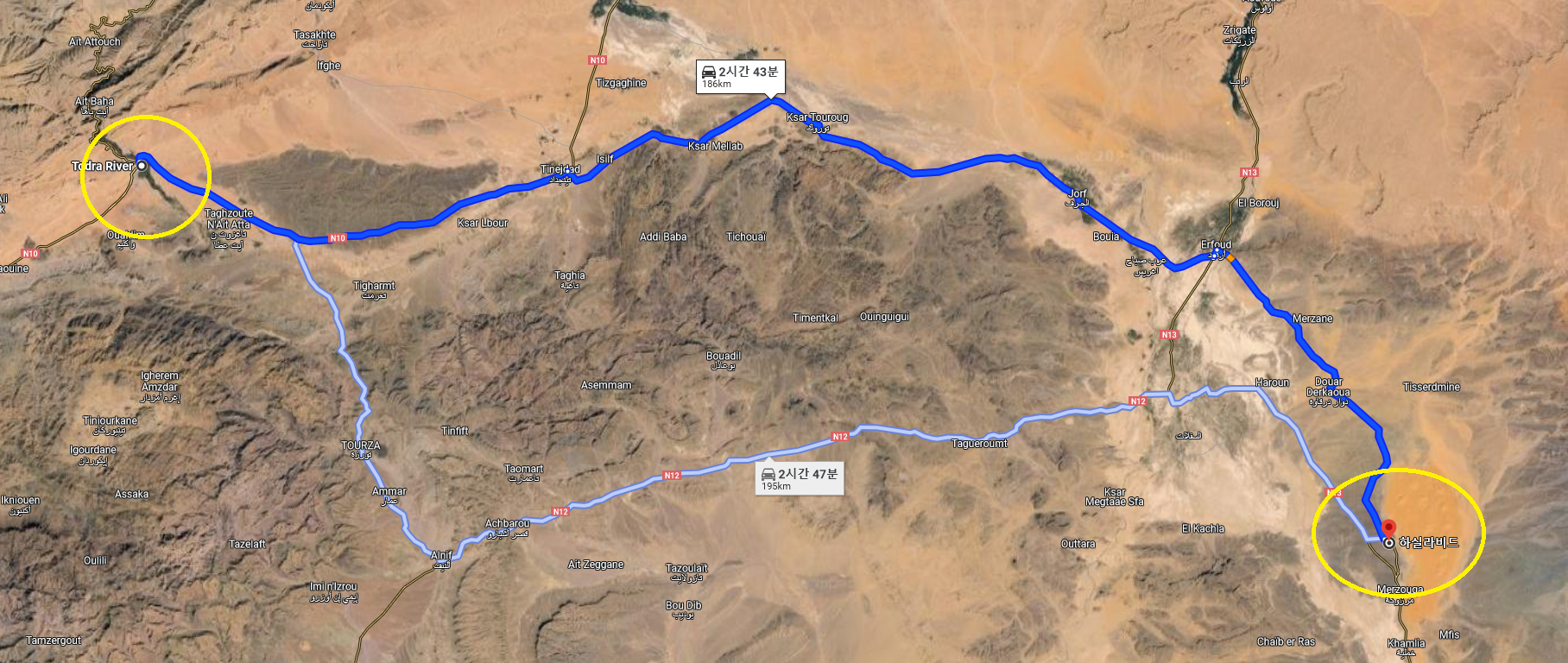 모로코에서 이동할 때는 가능하면 지방도보다는 도로사정이 좋은 국도를 타는 것이 좋습니다.