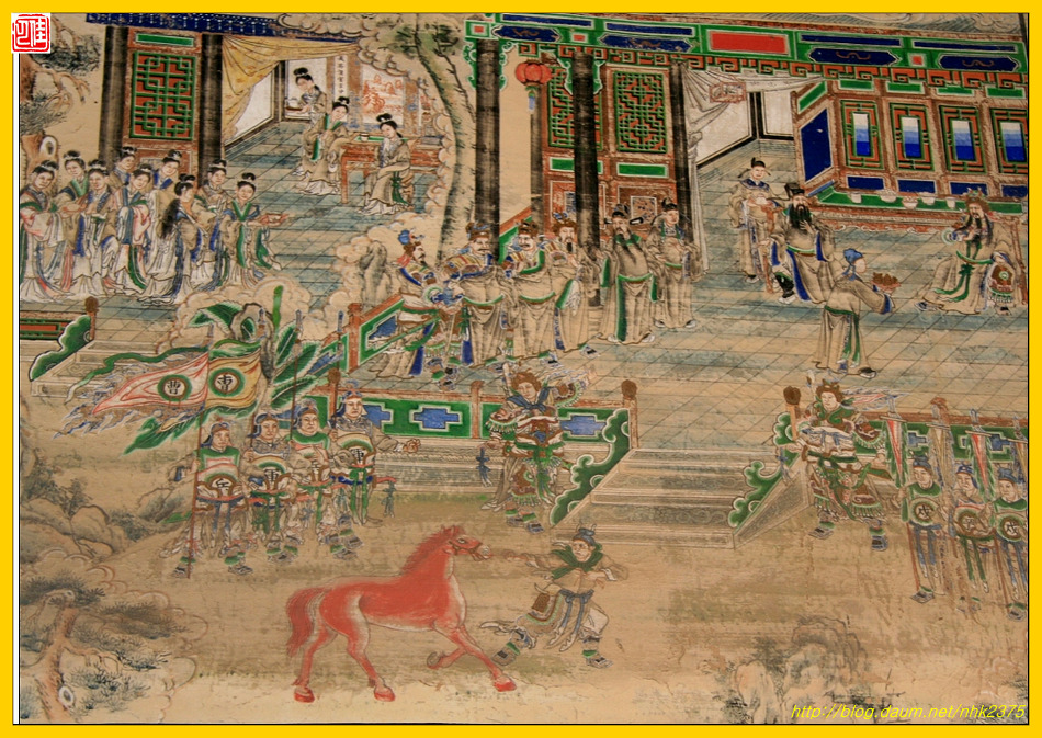 바로 조조가 관우에게 그 유명하다는 적토마를 선물하는 장면이라 생각됩니다.