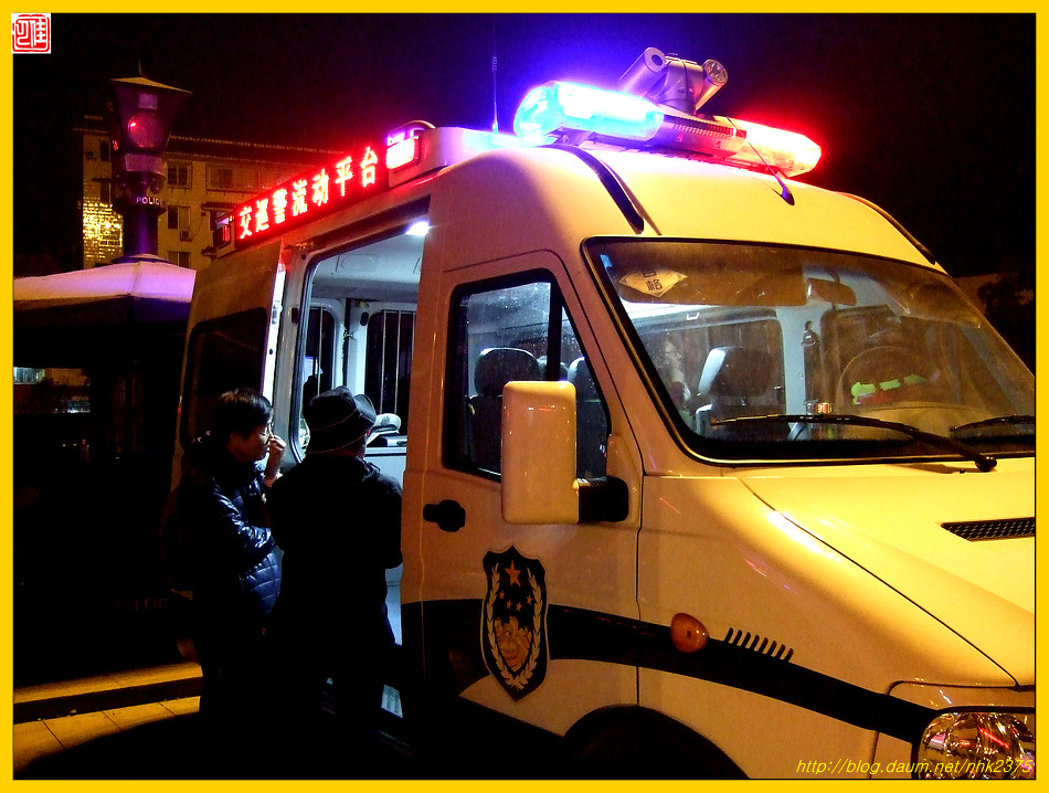 숙소로 돌아오는 광장에 미니 버스를 세운 공안 임시 파출소가 보입니다.