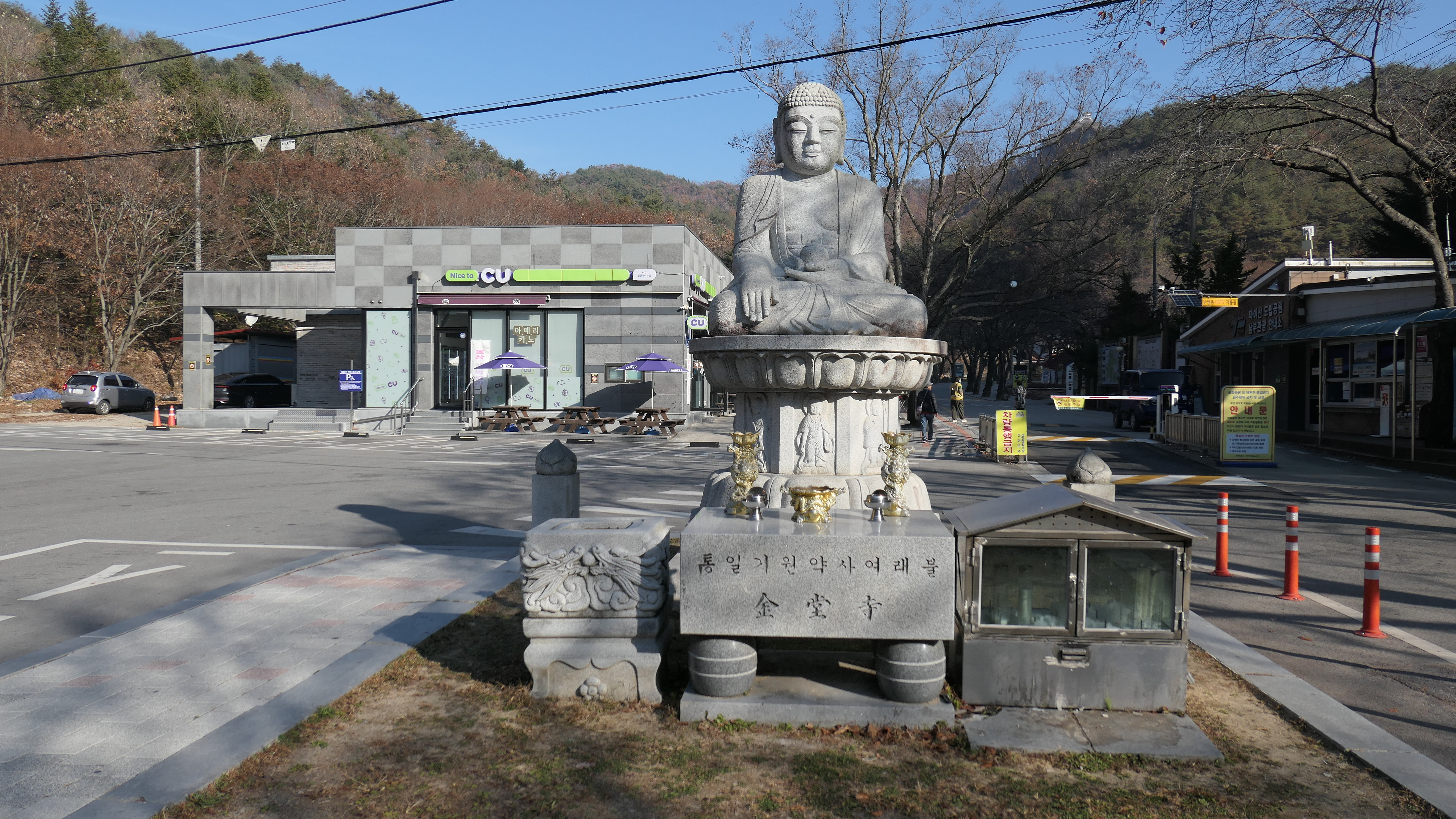 마이산 남부 진입로에서 마이산을 오르다 보면 매표소를 조금 지나서 왼쪽에 금당사가 있고