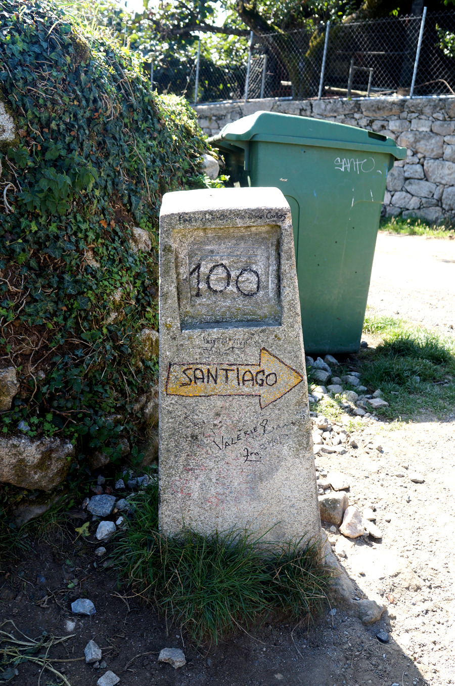 까미노 길에는 산티아고 데 콤포스텔라까지의 남은 거리를 표시한 마일스톤을