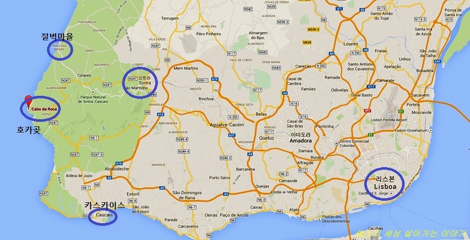 그곳에서 기차로 리스보아로 돌아오든가 다른 루트인 호카 곶에서 위에 있는