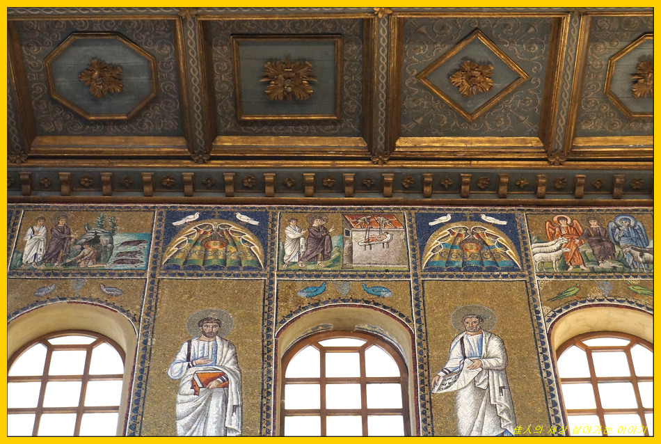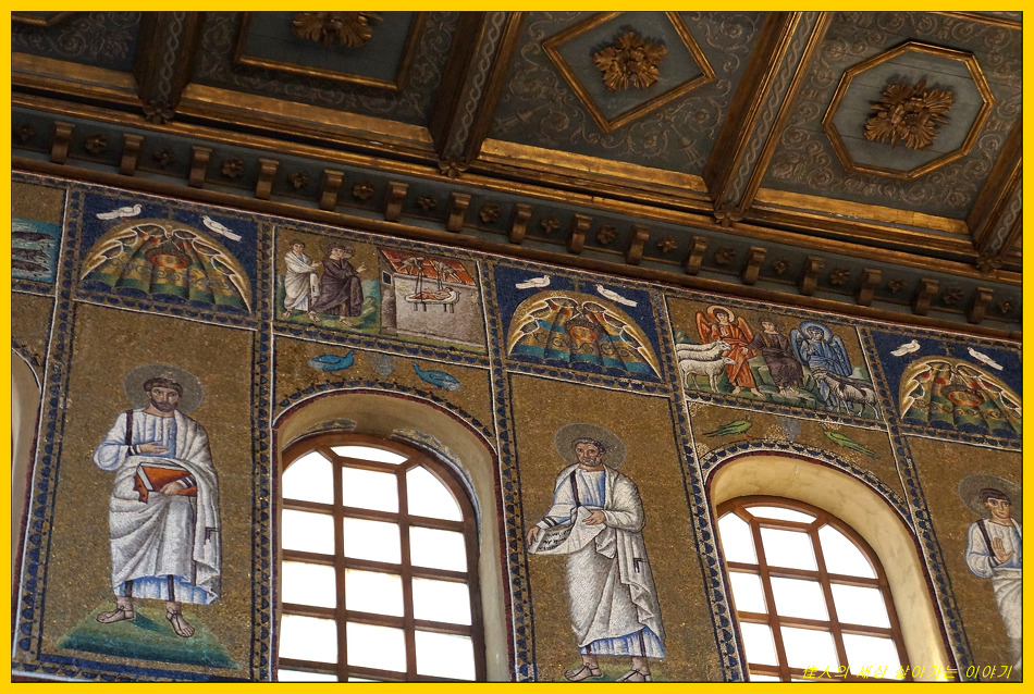그 아래 중간에는 창문을 만들어 채광했으며 창문 사이마다 또 모자이크화가 있습니다.