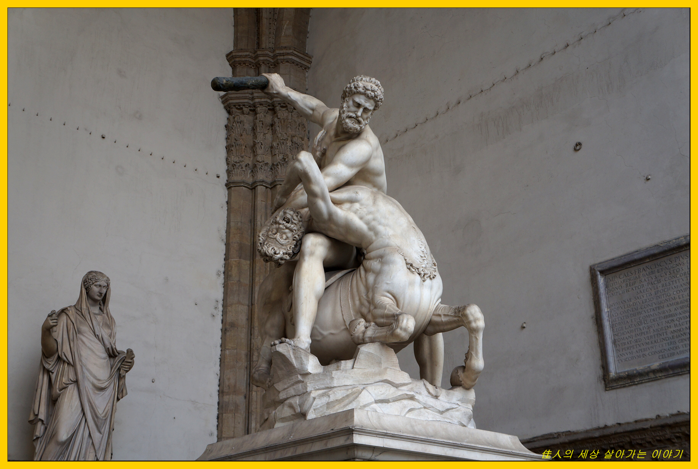 반인반마(半人半馬)라는 켄타우로스를 몽둥이로 때려잡는 모습입니다. (Hercules and Centaur)