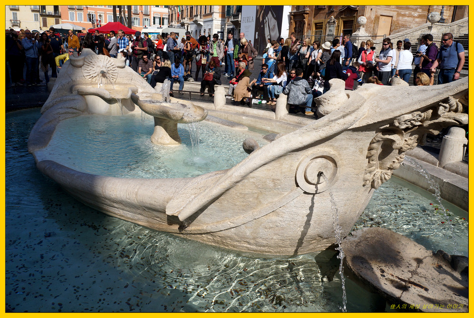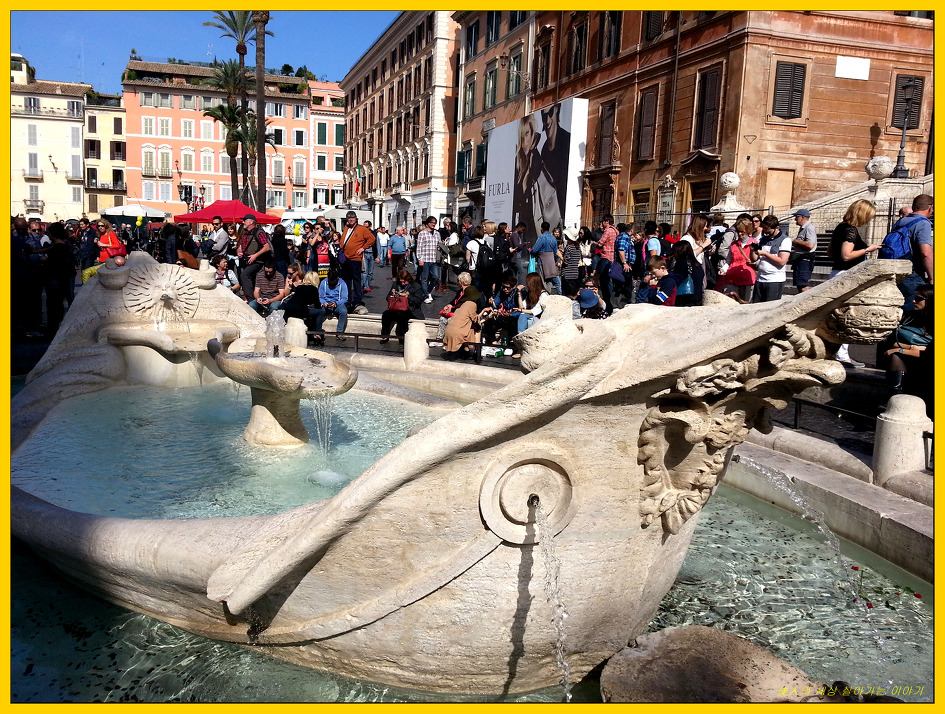 광장 한가운데는 낡은 배의 분수라는 바르카차의 분수(Fontana della Barcaccia)가