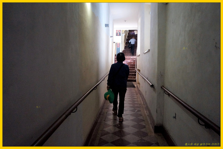 저곳으로 들어가야 예배당으로 올라갈 수 있습니다.