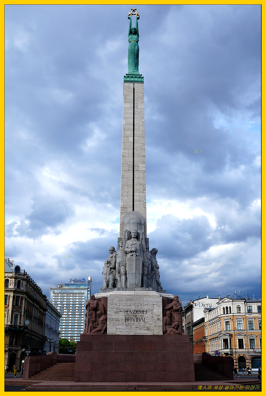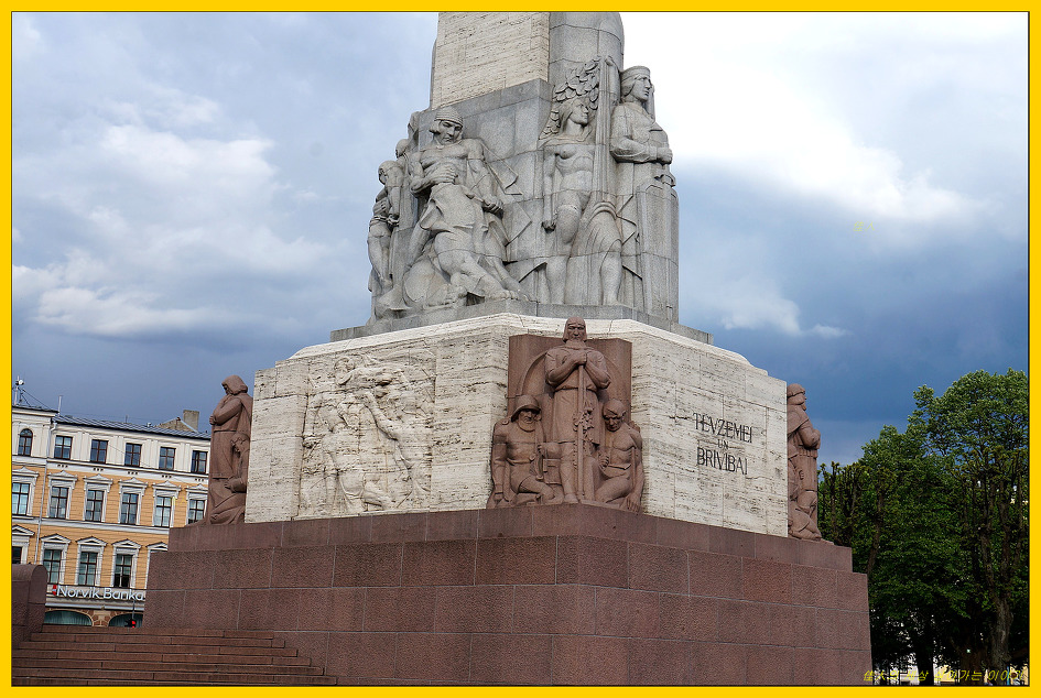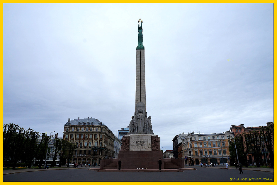 흔히 자유의 여신상이라고 부르는 자유 기념비(Brīvības piemineklis)가 우뚝 서 있습니다.