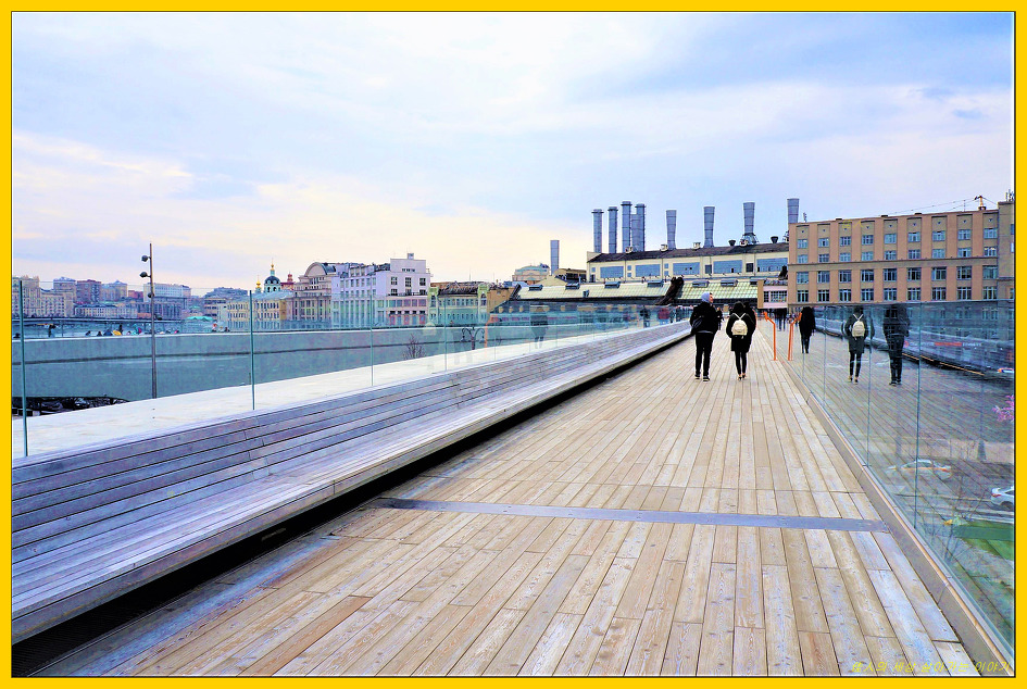 그 공원 끝에는 모스크바 강 가운데로 산책할 수 있는 데크를 만들어 놓았습니다.