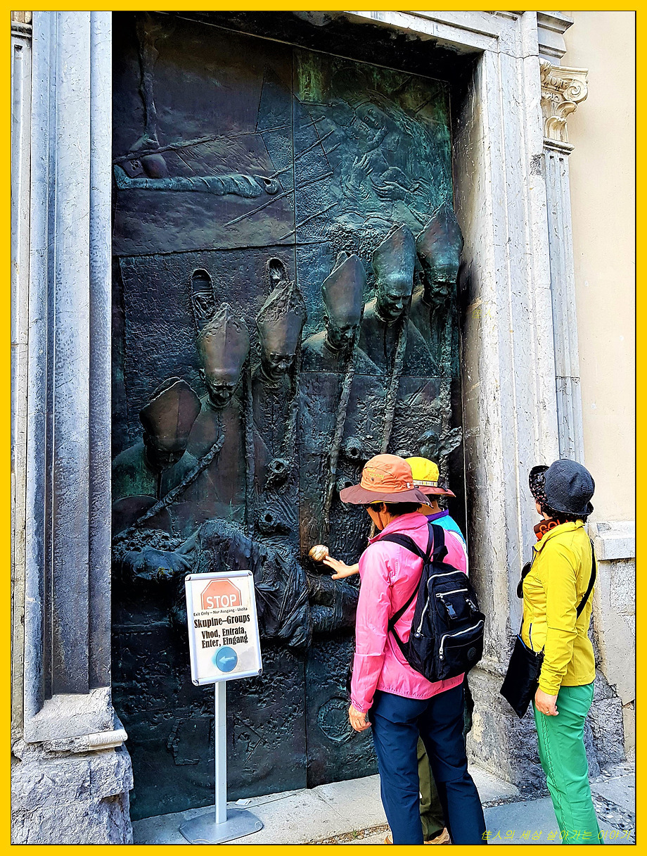 정문에는 슬로베니아 기독교 역사를 새겨두었다고 합니다.