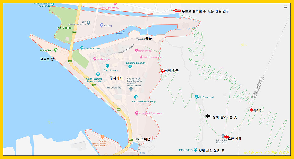이 건물 앞에서 내려다보면 코토르만의 풍경이 한눈에 들어옵니다.