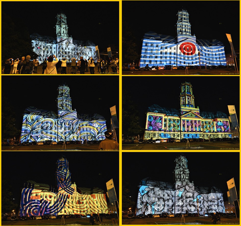 오늘 이곳에서는 우리가 도착할 때 프로젝션 매핑 조명 쇼가 막 시작하네요.