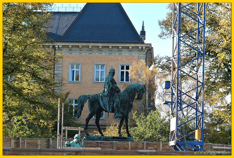 황제 빌헬름 1세(Kaiser-Wilhelm-I.-Denkmal)의 청동상이 보입니다.